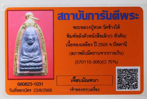วัดใจ หลวงปู่ทวด วัดยะหาประชาราม ปี 2503 พิมพ์ใหญ่ อ.ทิมร่วมปลุกเสก |