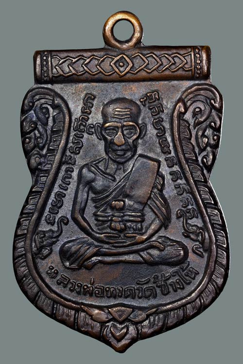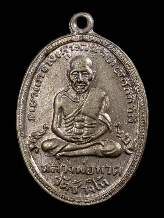 หลวงพ่อทวด พิมพ์หลังตัวหนังสือใหญ่ (หน้าตัว ท หลังเสาอากาศ) เนื้อทองเหลือง สภาพสวยเดิม |