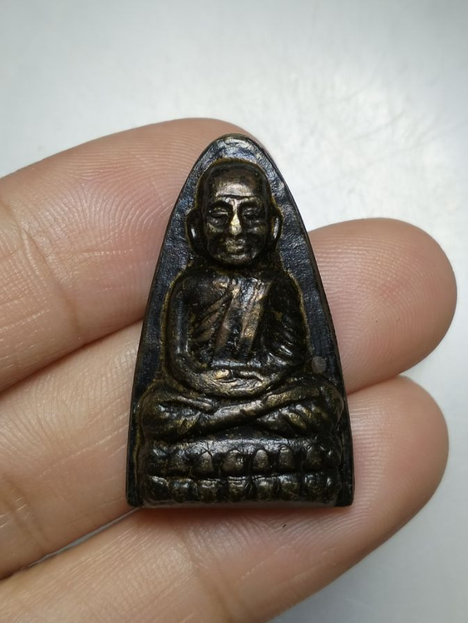 หลวงปู่ทวดเบ้าฉีด รุ่นสร้างมณฑป เนื้อนวโลหะ ปี 2540 ตอกโต๊ตและหมายเลขใต้ฐาน เลี่ยมพร้อมใช้ |