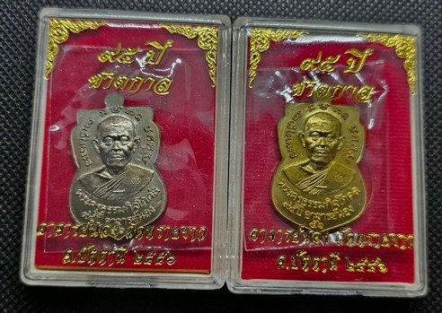 วัดใจ เหรียญหัวโต รุ่นแรก อาจารย์นอง วัดทรายขาว ปี2535 เนื้อเงินหน้าทองคำ พร้อมบัตรจีพระ |