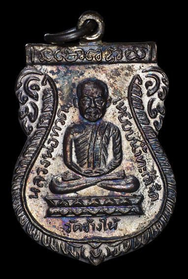 เหรียญเสมาหลวงพ่อทวด วัดช้างให้ รุ่นใต้ร่มเย็น ปี 2526 บล้อก กษาปณ์ หู2ขีดเนื้อ ทองแดงรมดำ |