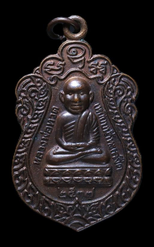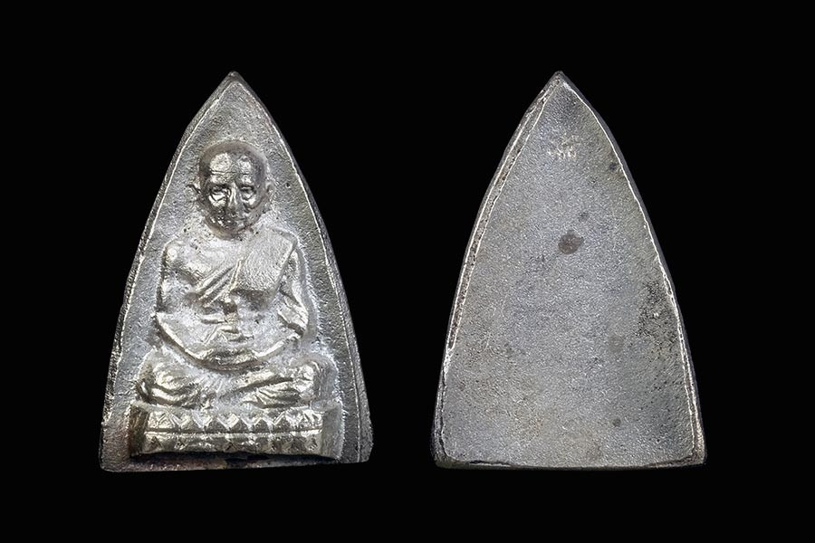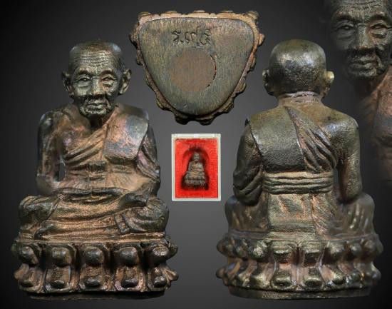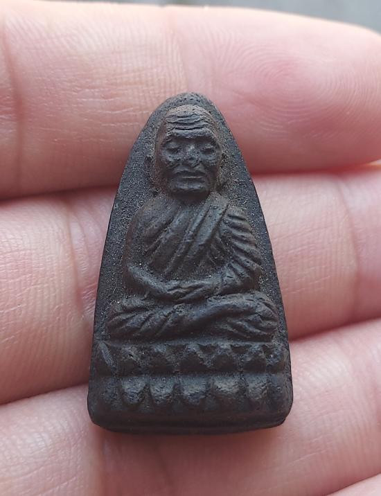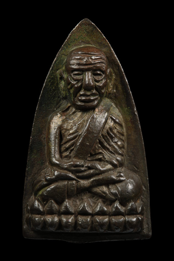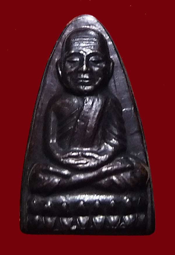 พระกลีบบัวหลวงปู่ทวด วัดช้างให้ ร.ศ.200 ปี 2525 พิมพ์หน้าหนุ่ม เนื้อทองเหลืองรมดำ เคาะเดียวแดง องค์ที่ 2 |