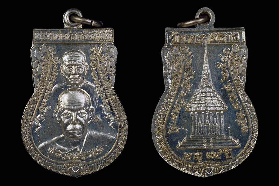 หลวงปู่ทวด พิมพ์หลังเตารีดกลาง เนื้อนวะโลหะ รุ่นสร้างโรงพยาบาลโคกโพธิ์ ปี 2539 วัดช้างให้ |