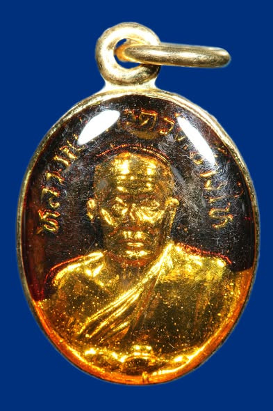 เหรียญหยดน้ำหลวงปู่ทวดปี 22 เนื้อทองแดงกะไหล่ทองลงยาเคลือบเรซิ่น |