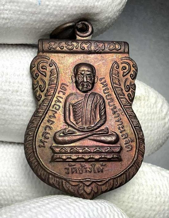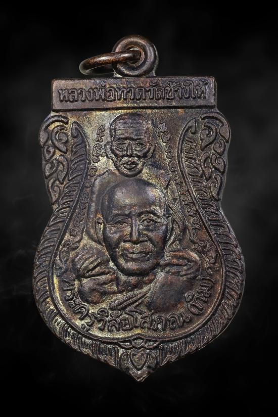 เหรียญหยดน้ำหลวงปู่ทวด วัดช้างให้ ปี 2522 พิมพ์หน้าแก่ เนื้อทองแดงรมน้ำตาล เคาะเดียวแดง |