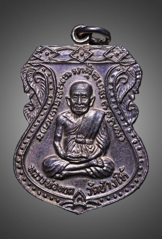พระหลวงปู่ทวด พิมพ์เตารีดเล็ก เนื้อนวะโลหะ รุ่นสร้างโรงพยาบาลโคกโพธิ์ ปี 2539 วัดช้างให้ |