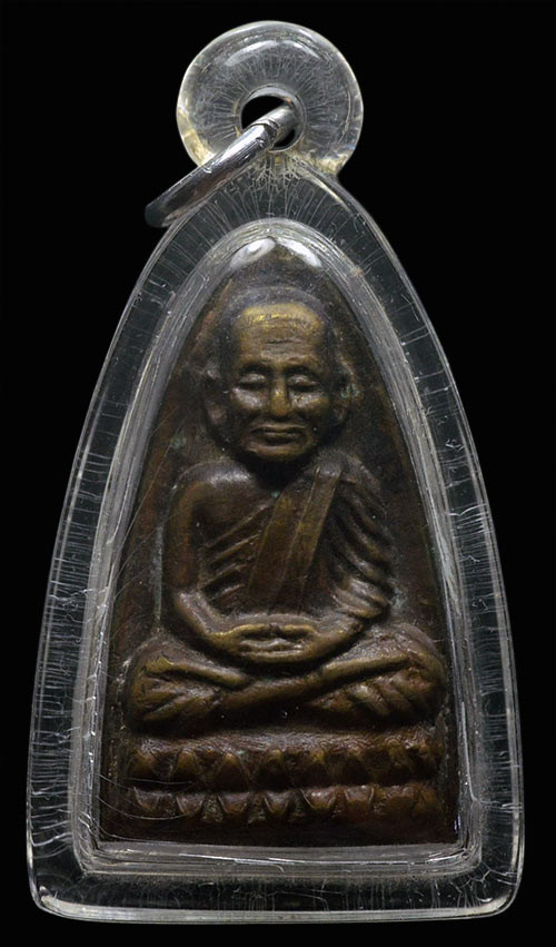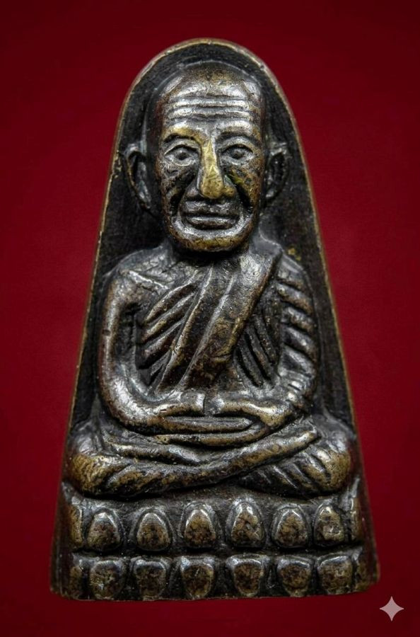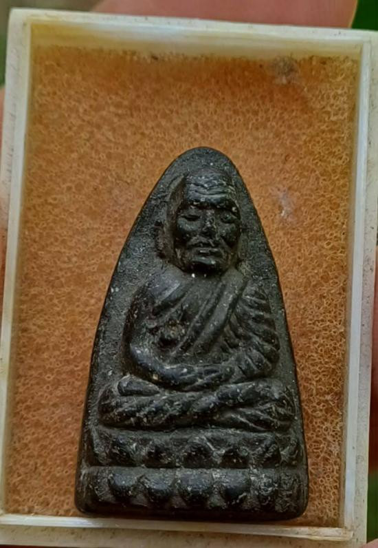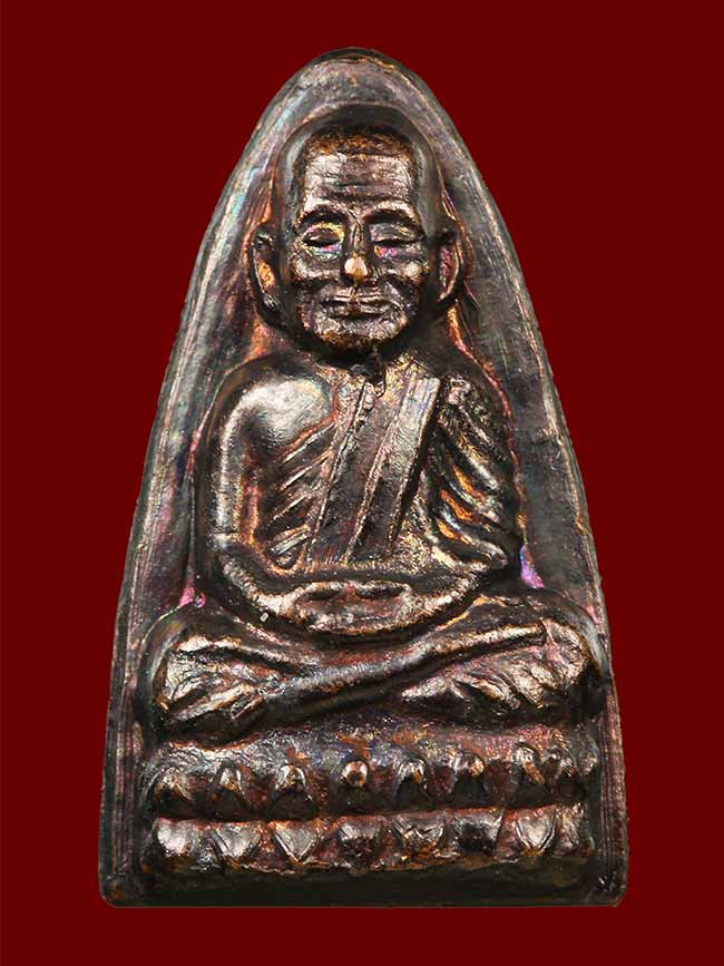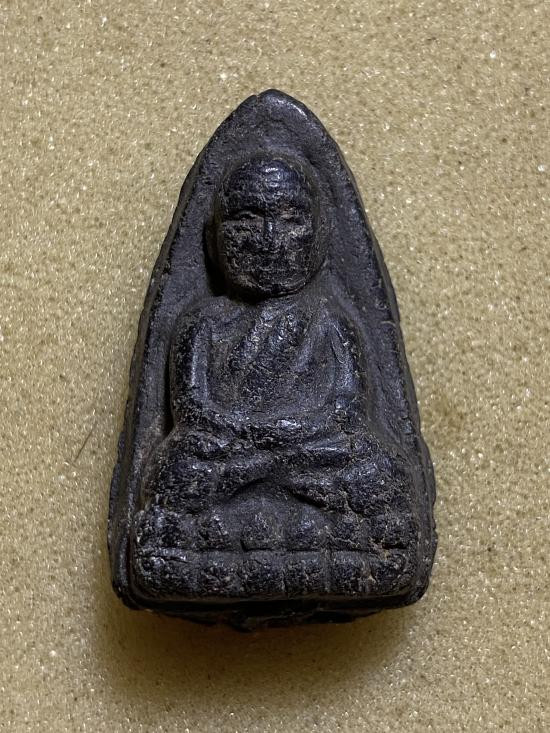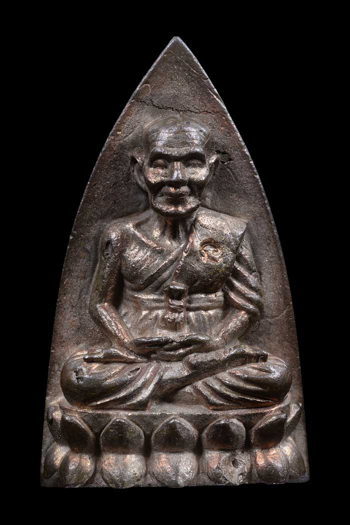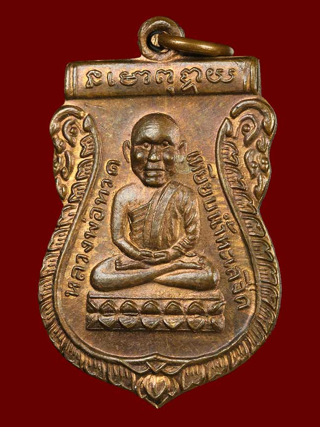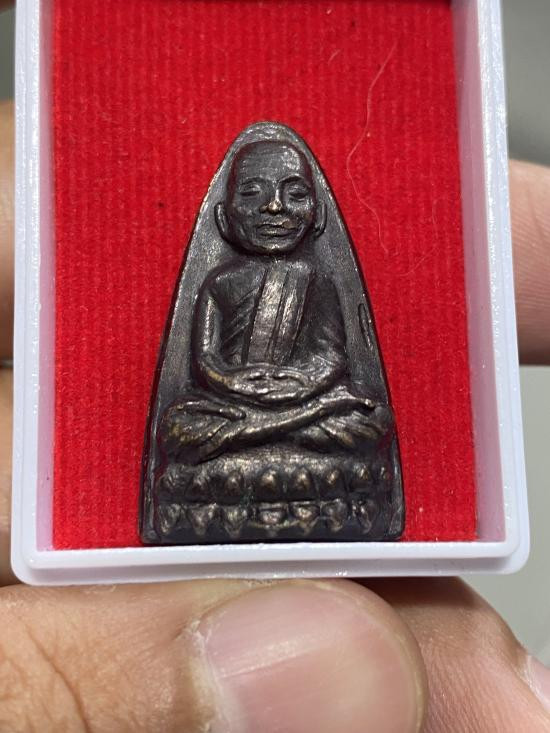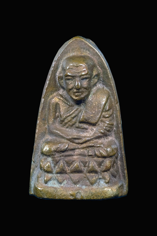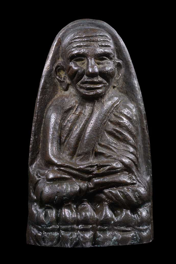 พระกลีบบัวหลวงปู่ทวด วัดช้างให้ ร.ศ.200 ปี 2525 พิมพ์หน้าหนุ่ม เนื้อทองเหลืองรมดำ เคาะเดียงแดง องค์ที่ 4 |