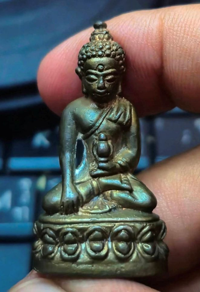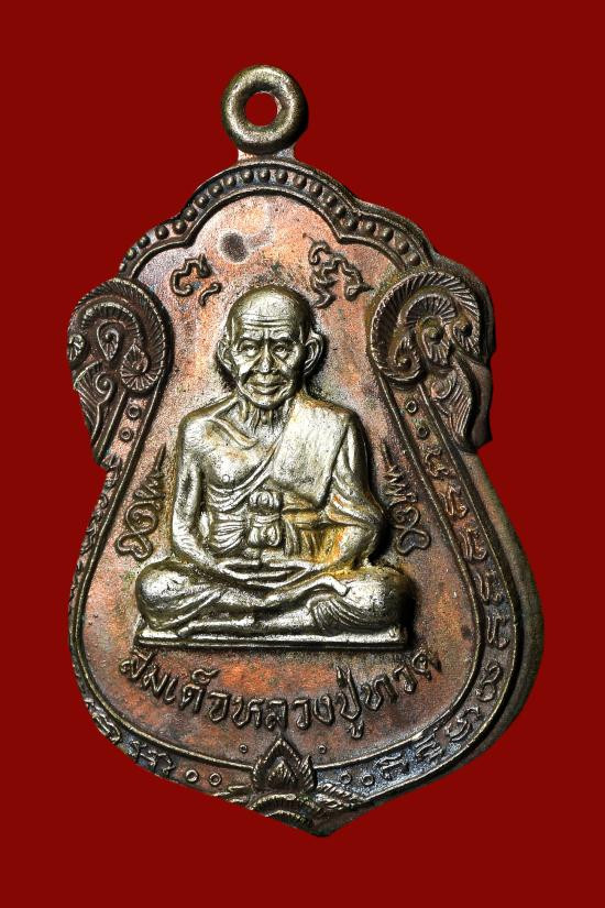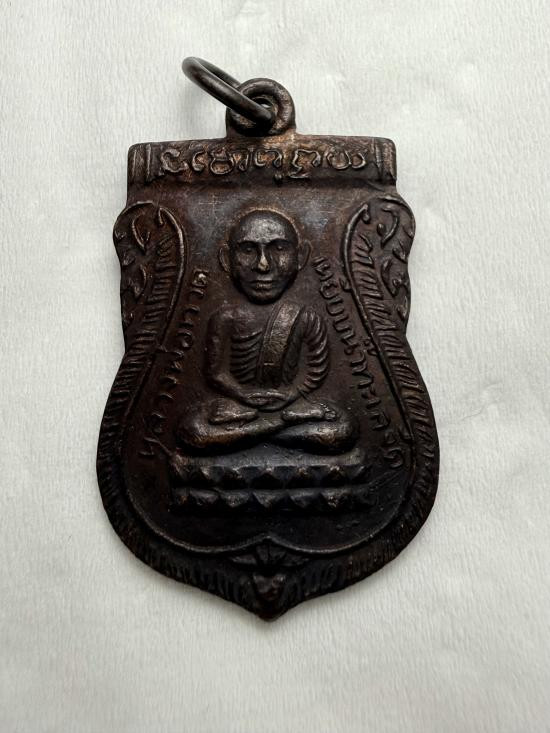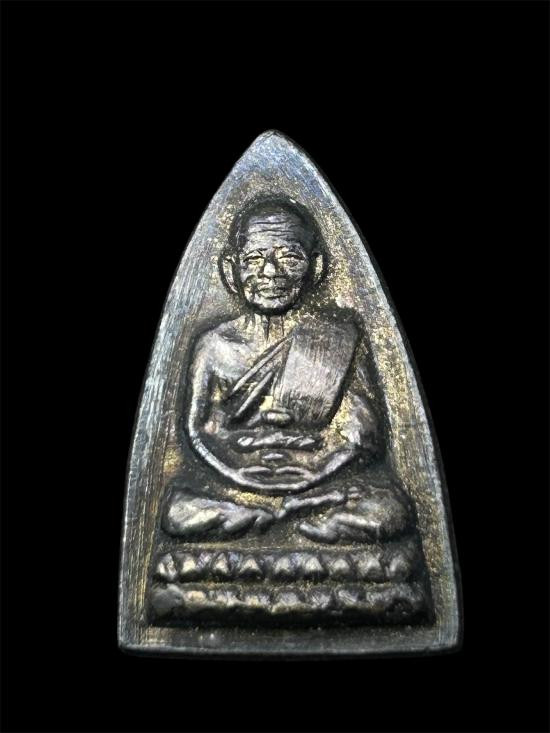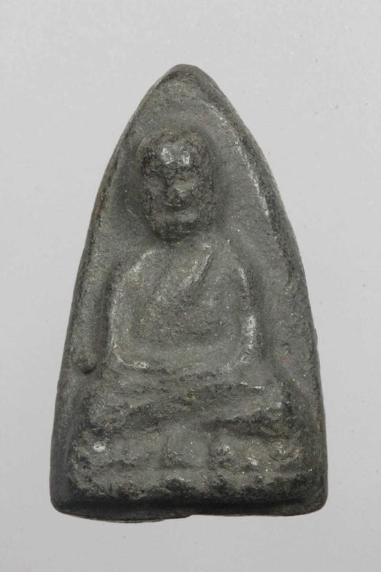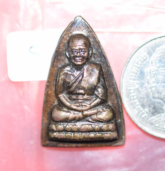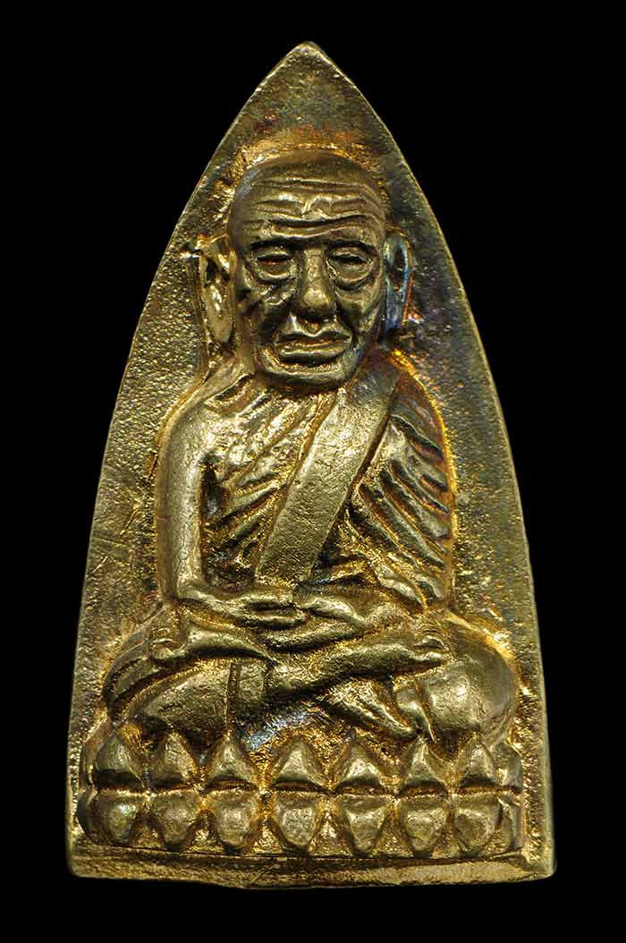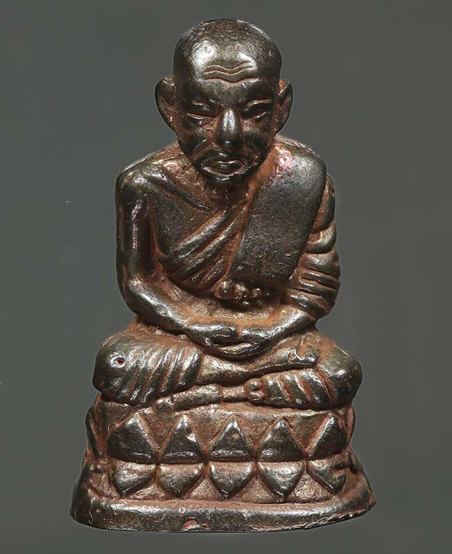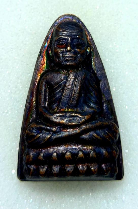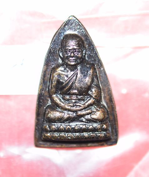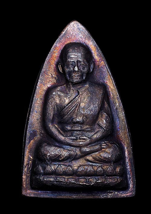 พระกลีบบัวหลวงปู่ทวด วัดช้างให้ ร.ศ.200 ปี 2525 พิมพ์หน้าหนุ่ม เนื้อทองเหลืองรมดำ เคาะเดียงแดง องค์ที่ 4 |