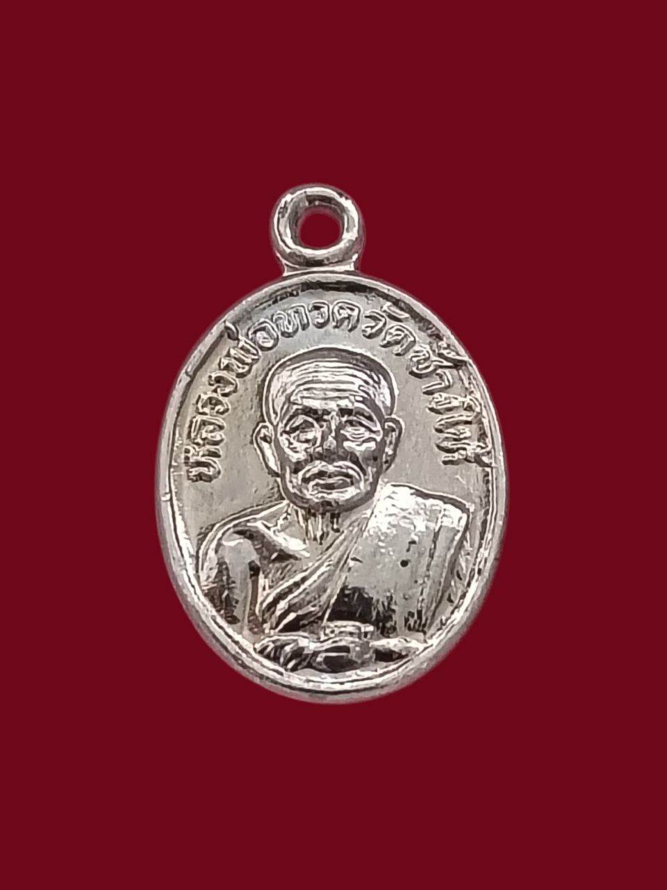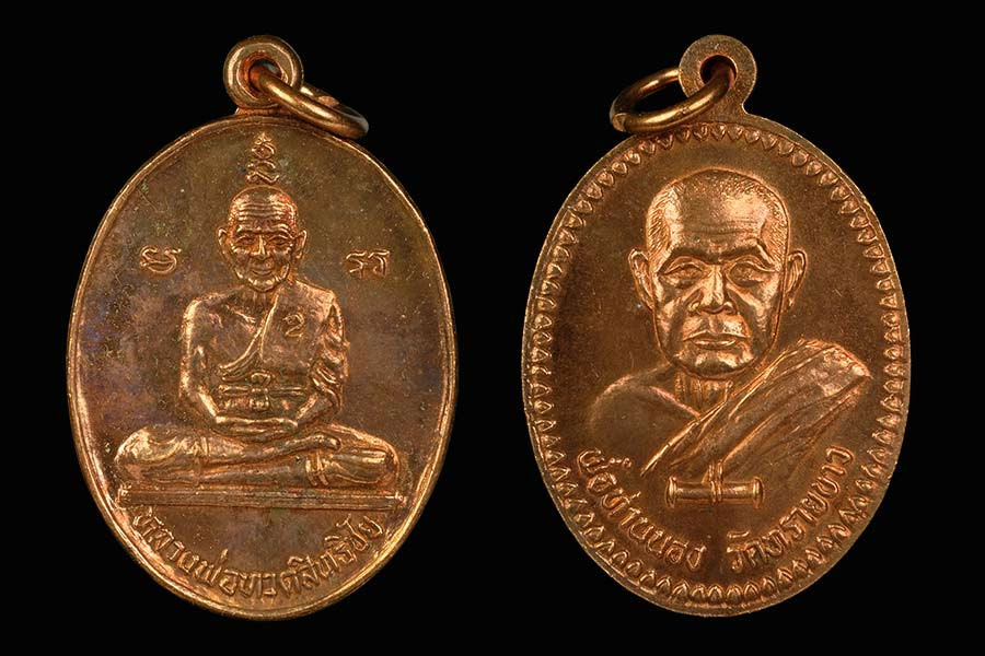 "เคาะแรกแดง" เหรียญปั๊มรูปเหมือนตัดชิด (ครึ่งซีก) พระอาจารย์นอง วัดทรายขาว ปี ๒๕๓๗ |