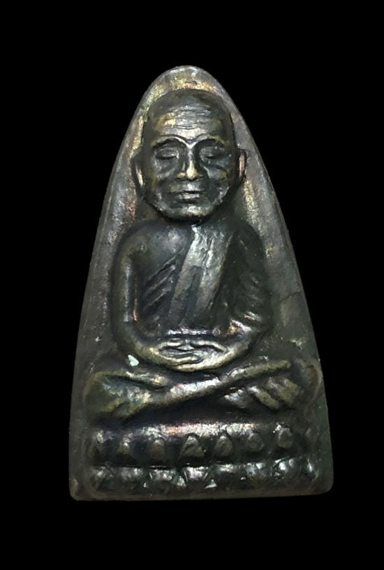 หลวงพ่อทวดปี 2524 เนื้อทองแดงรมดำบล๊อกนิยมหน้าหนูหลังนะหลังสามจุด |