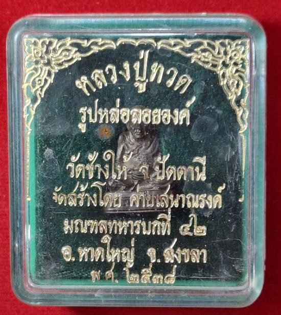 รูปหล่อลอยองค์ หลวงปู่ทวด วัดช้างให้ จ.ปัตตานี ปี2538 (จัดสร้างโดย ค่ายเสนาณรงค์ จ.สงขลา อาจารย์นอง วัดทรายขาว ปลุกเสก เนื้อนวะ กล่องเดิม สวย นิยม หายาก) |