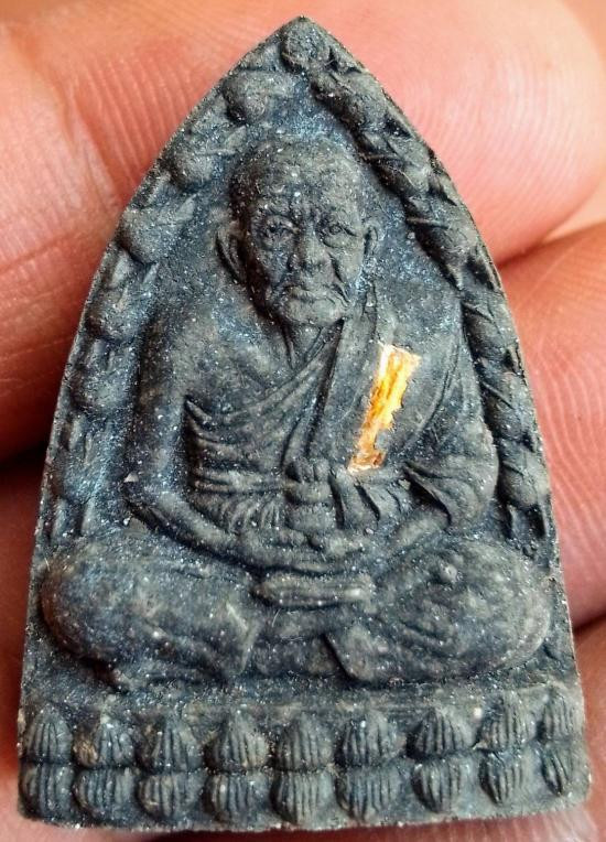 พระหลวงปู่ทวด รุ่นพุทธคุณนิลกาฬ ด้านหลังฝังเม็ดกระดุมทองคำ มีกล่อง แดงเคาะแรก |