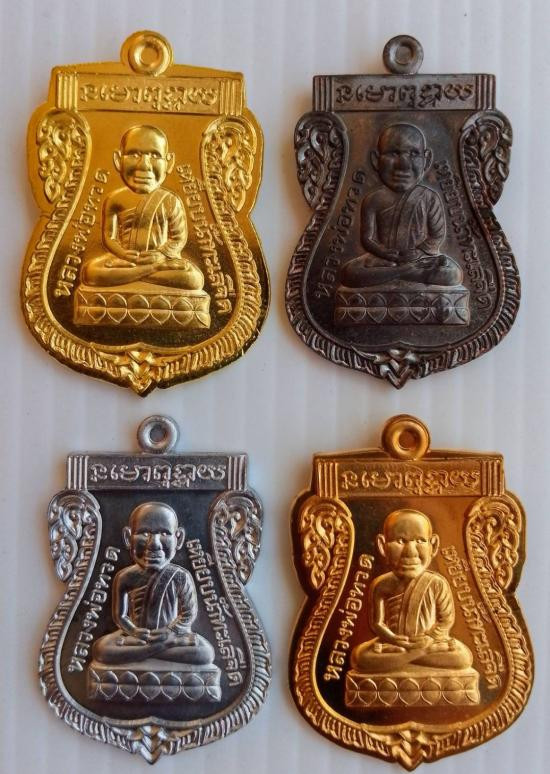 ๓ เม็ด เนื้อนวะโลหะ เนื้อทองทิพย์ เนื้อทองแดง พระปิดตามหาลาภ พ่อท่านเขียว วัดห้วยเงาะ ปี ๒๕๕๘ |