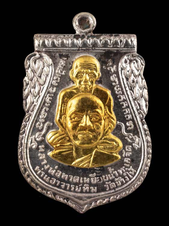เหรียญพิมพ์เสมาหน้าเลื่อน2หน้าหลวงพ่อทวด-หลวงพ่อทองเนื้อเงินลงยาแดง รุ่นแซยิด93 วัดสำเภาเชยปี2553 |