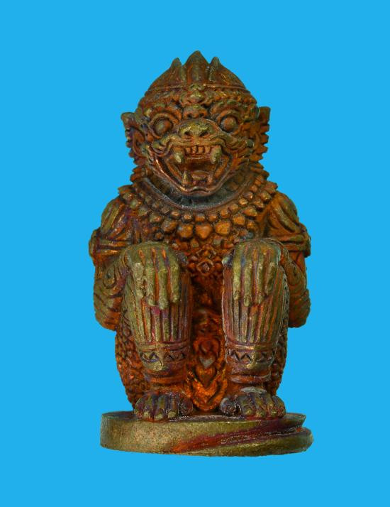 เลข 87 หนุมานชนะมารเนื้อทองแดงชนวน อุดผงพรายกุมาร หลวงปู่เขียว วัดห้วยเงาะ ขนาด ๓ ซม. |