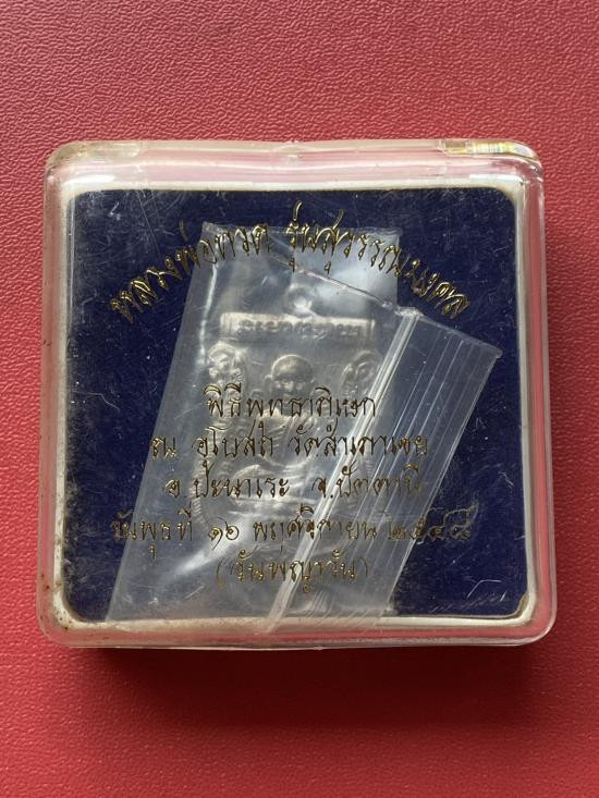 พระหลวงปู่ทวด รุ่นสุวรรณมงมล พิมพ์สี่เหลี่ยมกลักไม้ขีด ฝังตะกรุดเงิน อาจารย์ทอง วัดสำเภาเชย จ.ปัตตานี ปี ๒๕๔๘ พร้อมกล่อง |