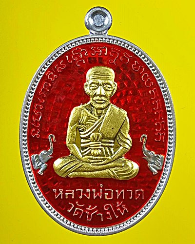 เคาะเดียวแดง หลวงปู่ทวด อาจารย์ทอง รุ่นพิทักษ์แผ่นดิน เนื้อชุบทอง หัวขีดกรรมการ |