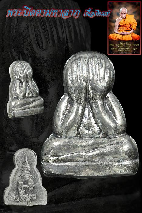 เงินกำลังแพง พระปิดตามหาลาภเนื้อเงินแท้ หลวงปู่เขียว วัดห้วยเงาะปัตตานี ปี ๒๕๕๘ สร้าง ๑๐๘ เม็ด |