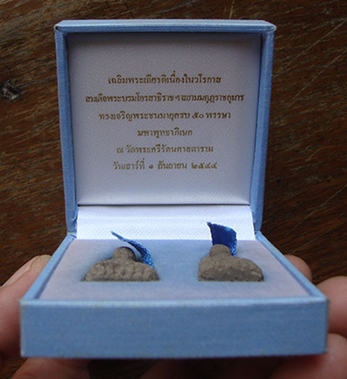 หลวงพ่อทวด เนื้อผงผสมน้ำนมควายผสมกับผงว่านมหามงคล ๑๐๘ ชนิด แช่น้ำมนต์ รุ่นชนะภัย วัดถลุงทอง จ.นครศรีธรรมราช ปี 2539 พิมพ์สี่เหลี่ยมกรรมการ |
