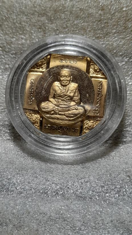 วัดใจ หลวงปู่ทวด หลวงปู่ศิลา เมตตาอธิษฐานจิต รุ่นเลื่อนสมณศักดิ์ เหนือดวง เนื้อทองทิพย์ ลงยา No.84 |