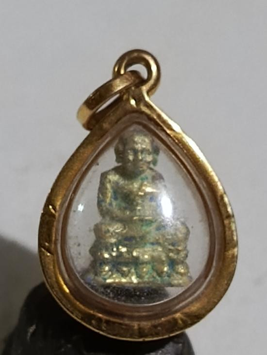 รูปหล่อลอยองค์ จิ๋ว (หล่นหาย) ลป.ทวด((เนื้อทองแดงเดิม+กะหลั่ยทองใหม่)) ลป.เนียน โชติธรรมโม สน.ต้นเลียบ อ.สทิงพระ จ.สงขลา สร้างปี 2538 ((พร้อมกล่องบรรจุเดิมๆ))
