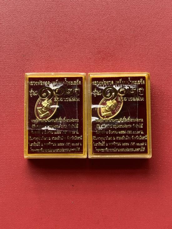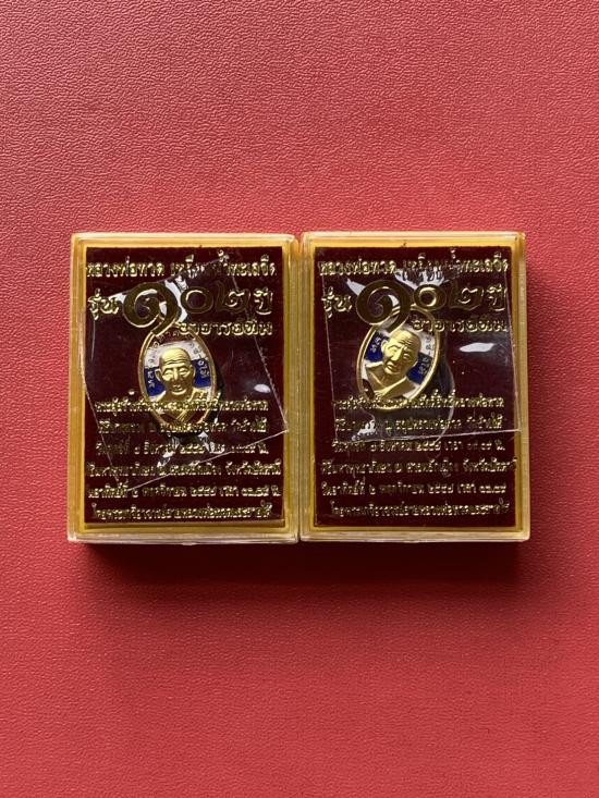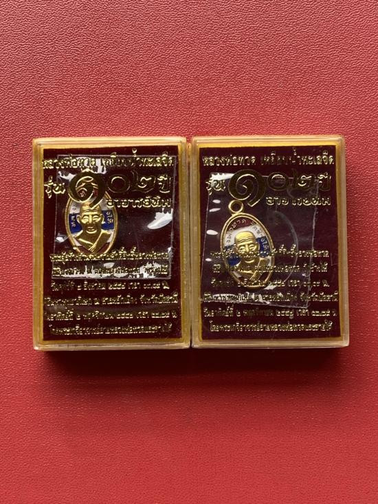 เคาะเดียวแดง เม็ดแตง 2องค์หลวงปู่ทวด รุ่น102ปีอาจารย์ทิม เนื้อชุบทองลงยาสีธงชาติ