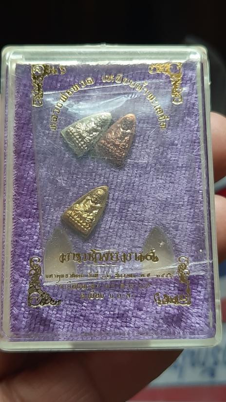 พระชุดหลวงปู่ทวด พิมพ์เตารีดจิ๋ว 3 องค์ รุ่น"มหาทิพยมนต์" พ่อท่านฉิ้น วัดเมือง จ.ยะลา ปี56(พิธีใหญ่ พระเกจิสายลป.ทวด เขาอ้อ ร่วมปลุกเสก) พร้อมกล่อง