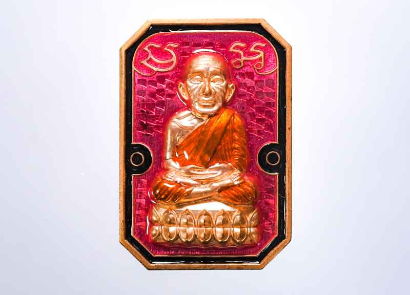 วัดใจ เคาะเดียวแดง หลวงปู่ทวด พิมพ์พระรอด วัดหัวยมงคล รุ่นปาฏิหาริย์ลายเซ็นต์ หลังฝังหัวใจพระราหู กล่องเดิมๆ