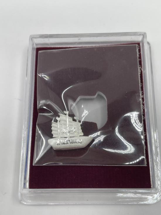 เรือสำเภาทองเรียกทรัพย์ รุ่นพุทธคุณหลวงพ่อทวด 105 ปีอาจารย์ทิม ปี 2560 พิมพ์เล็ก เนื้อเงิน |