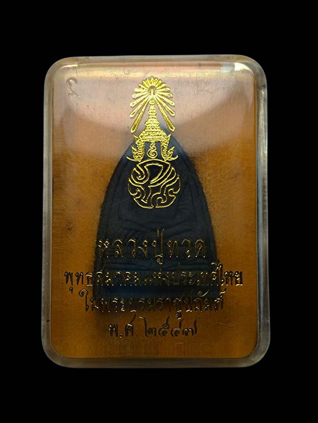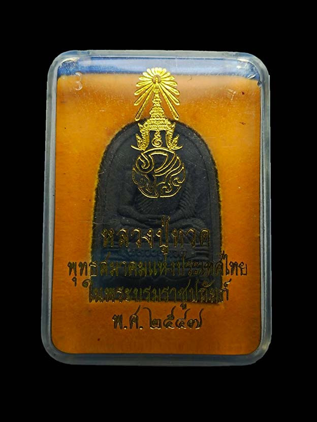 พระหลวงปู่ทวด รุ่น ภปร. ปี 2547 พิมพิ์เตารีดใหญ่ นิยม หลังฝังแผ่นพระปรมาภิไธย ภ.ป.ร. หมายเลข 65494 พิธีใหญ่ วัดพระแก้ว พุทธสมาคมแห่งประเทศไทย ในพระบรมราชูปถัมภ์ได้จัดแถลงข่าวการจัดสร้าง |
