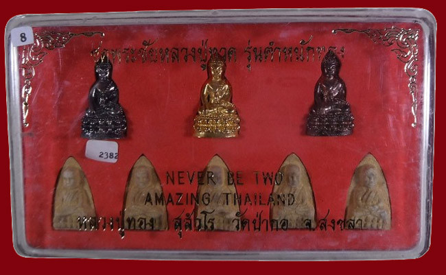 แดงที่เคาะแรก !!! พระชุด 8 องค์ (ฝังแผ่นโค๊ตเงิน+หมายเลข) รุ่นตำหนักทอง หลวงปู่ทวด หลวงพ่อทอง วัดป่ากอ จ.สงขลา ปี2540 กล่องเดิม + บัตรพระแท้ |
