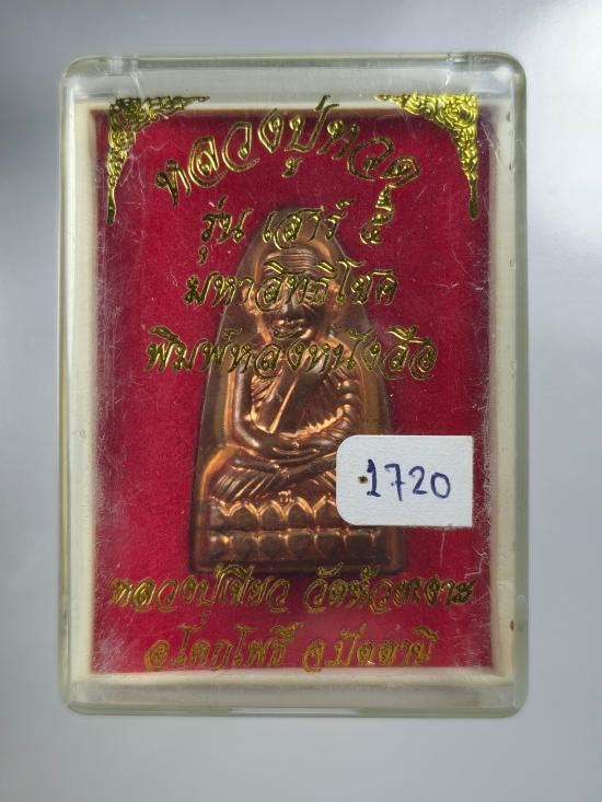 หลวงพ่อทวดหล่อโบราณหล่อเทดินไทย (รุ่นแรก) หลวงพ่อรวย วัดตะโก จ.อยุธยา ปี 2556 รุ่นรวยนิรันตราย เนื้อนวะโลหะหล่อโบราณเทดินไทย ตอกโค๊ต รวย/กรรมการ หมายเลข 844 |