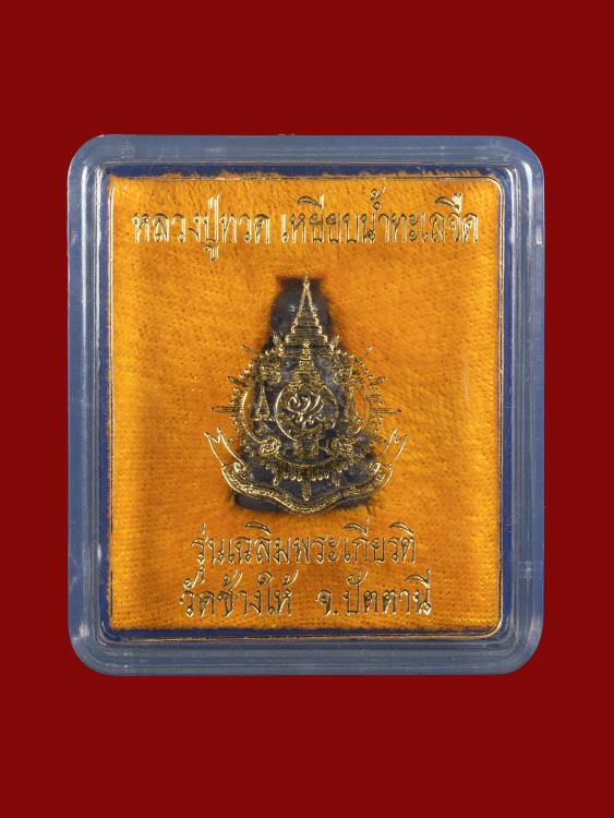 "วัดใจ" หลวงปู่ทวด เจริญพร เลื่อนสมณศักดิ์ วัดพะโคะ เหรียญเสมาฉลุ เนื้อนวะฯแก่ทองคำ หมายเลข ๑๔๔๘ สภาพสวยพร้อมกล่องเดิม |