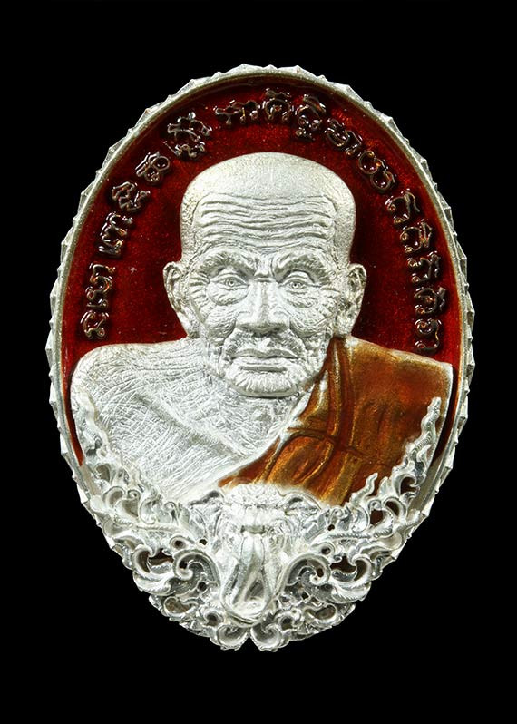 เคาะเดียวแดง เม็ดแตง หลวงปู่ทวด รุ่น100ปี อาจารย์ทิม เนื้อเงินลงยาสีเเดง |