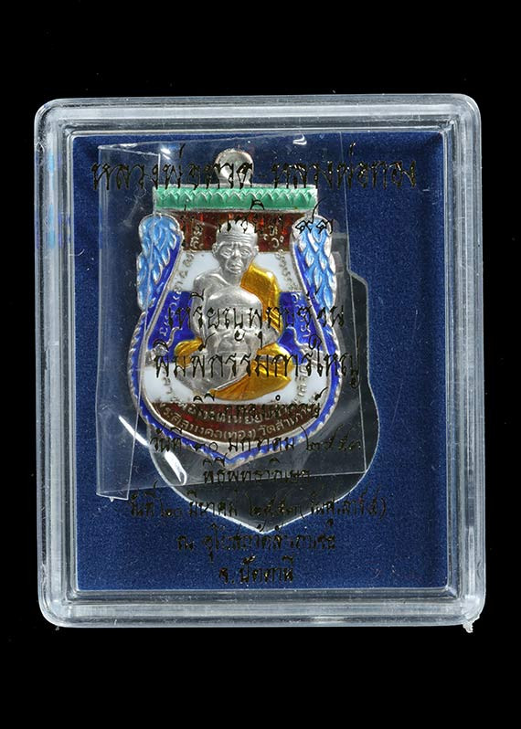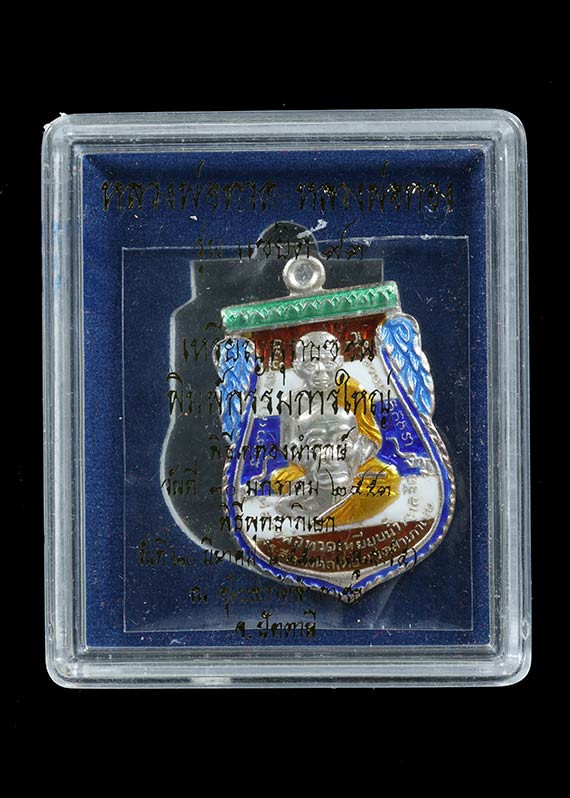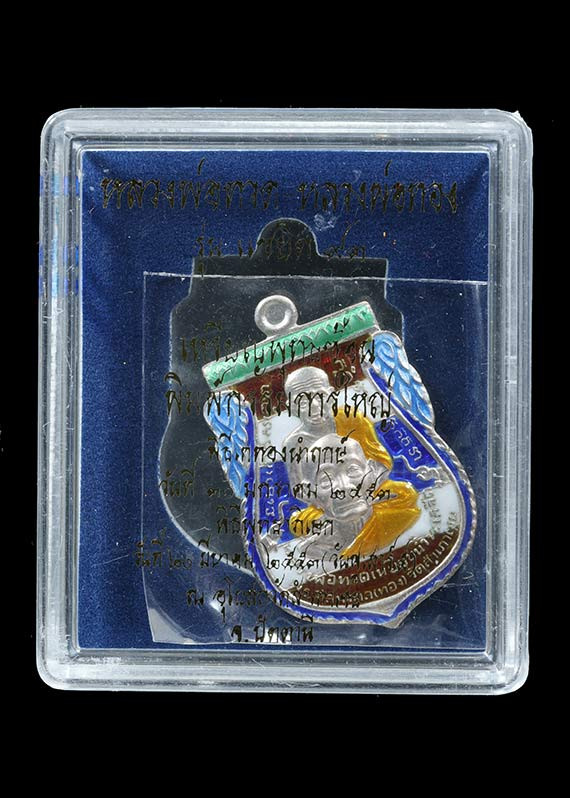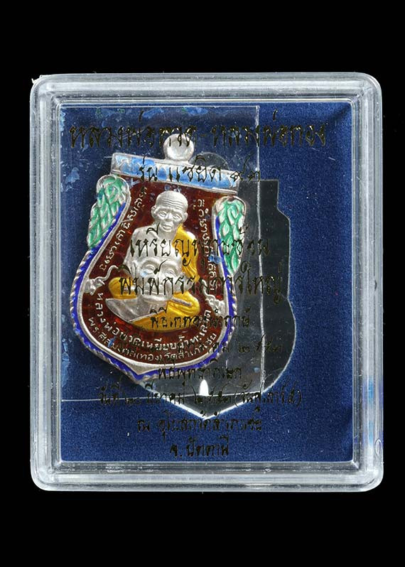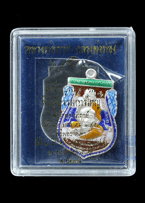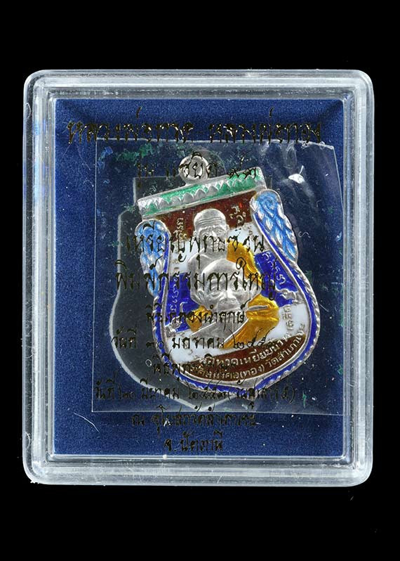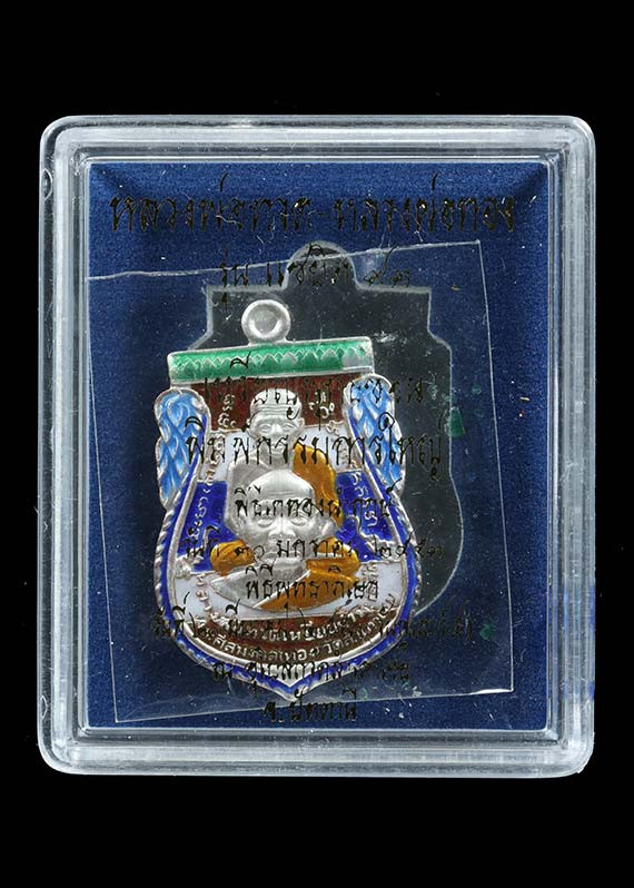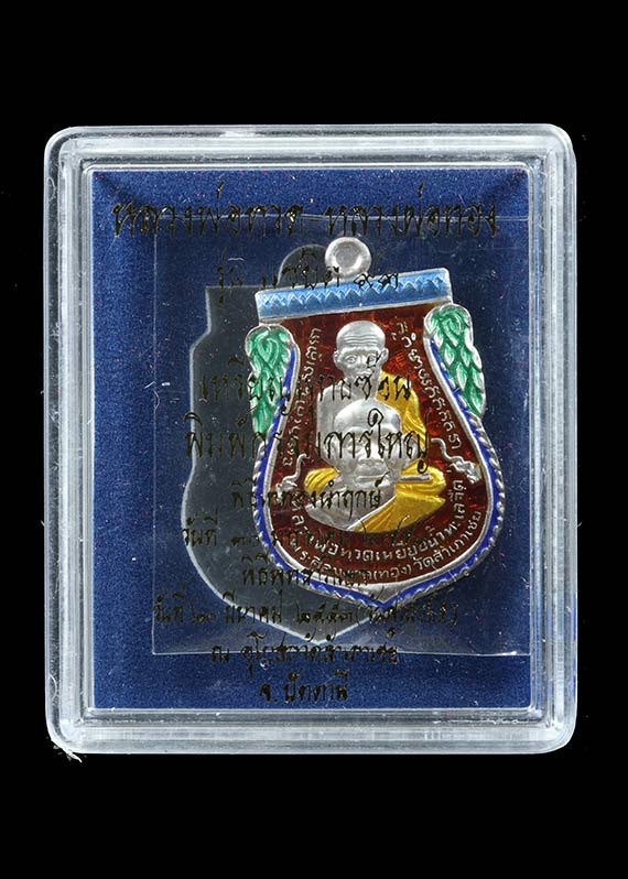วัดใจ หลวงปู่ทวด หลวงปู่ศิลา เมตตาอธิษฐานจิต รุ่นเลื่อนสมณศักดิ์ เหนือดวง เนื้อทองทิพย์ ลงยา No.27 |