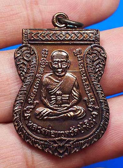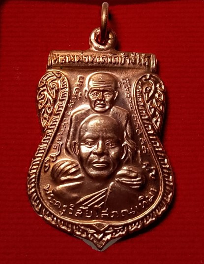 "วัดใจ แดง100" หลวงพ่อทวด หลังหลวงปู่เขียว วัดห้วยเงาะ รุ่นที่ระลึก 7 รอบ ปี 2556 เนื้อทองแดงผิวไฟ |