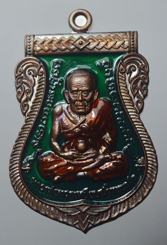หลวงปู่ทวด รุ่นเปิดโลก หลวงปู่ศิลาอธิษฐานจิต วัดพระธาตุหมื่นหิน เสมาเนื้อทองแดง มันปู ลงยาสีเขียว เลข 10 |