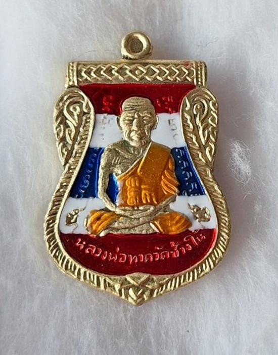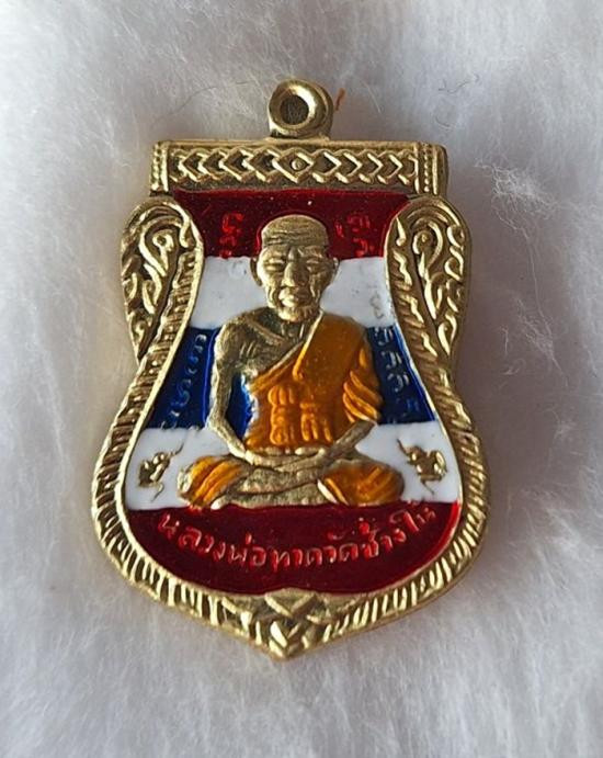 วัดใจ หลวงปู่ทวด หลวงปู่ศิลา เมตตาอธิษฐานจิต รุ่นเลื่อนสมณศักดิ์ เหนือดวง เนื้อทองทิพย์ ลงยาลายธงชาติ No.460 |