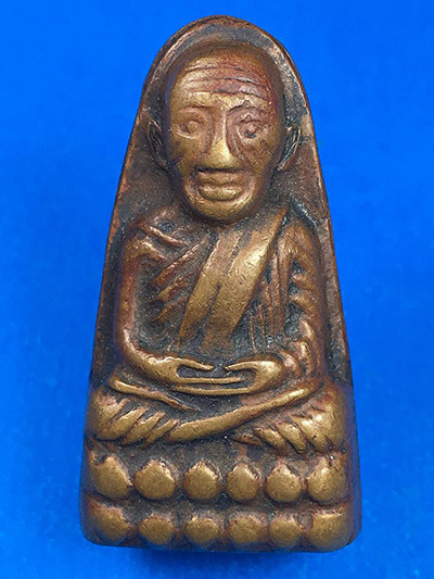 หลวงปู่ทวด รุ่น เปิดโลก หลวงปู่ศิลาอธิษฐานจิต วัดพระธาตุหมื่นหิน เนื้อทองแดง ลงยาไม่ตัดปีก ตอก ๙ รอบ ลงยาจีวร เลข 128 |