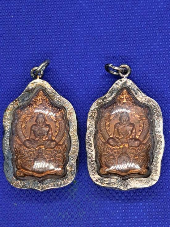 หลวงปู่ทวด เนื้อทองแดง รุ่นบุญสูง หลวงพ่อแล วัดพระทรง จ.เพชรบุรี พ.ศ.2545 เลี่ยมกรอบไมครอนพร้อมใช้จากวัด เคาะเดียวแดง 2 องค์ |