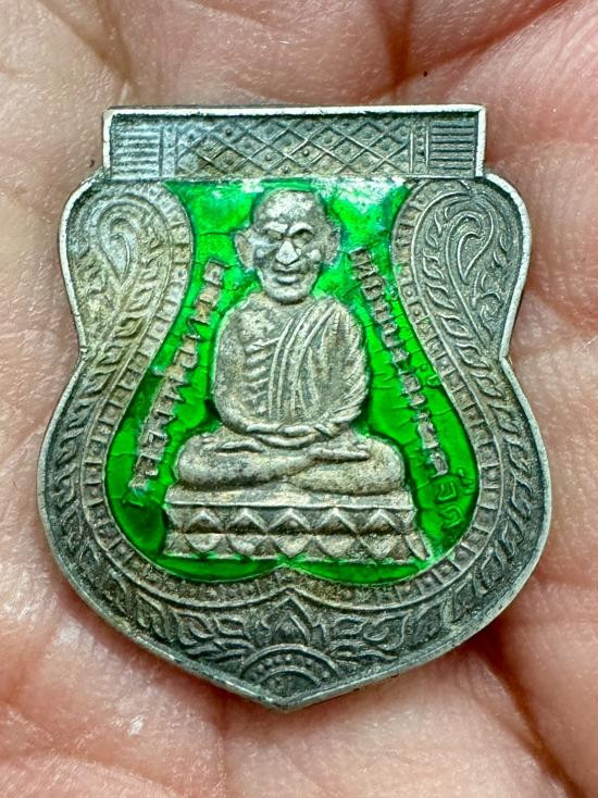 เหรียญเสมา เนื้อเงินลงยาสีเขียว หลวงปู่ทวด หลังหลวงปู่ทิม วัดช้างให้ ปัตตานี |