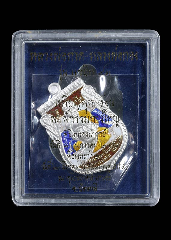 เหรียญเสมา หลวงปู่ทวด หลังหลวงปู่ทิมกะไหล่ทองลงยาสีน้ำเงินเคลือบ ปี 2545 เคาะเดียวครับ |
