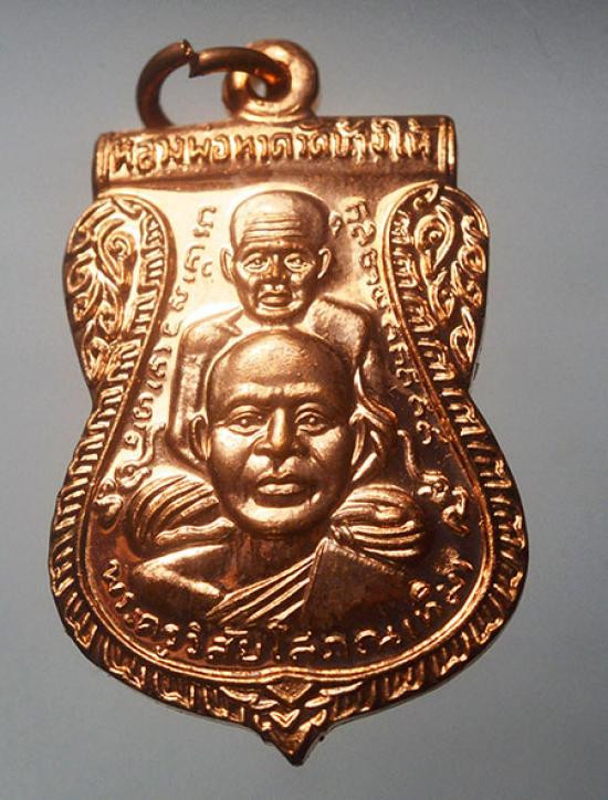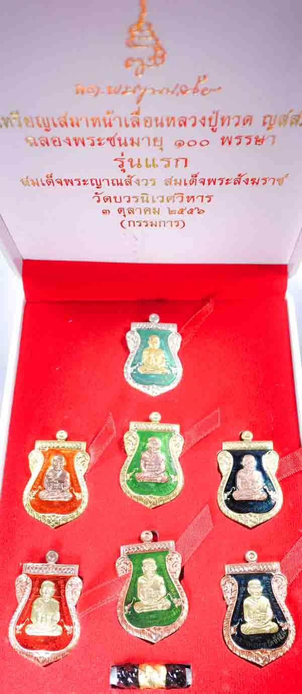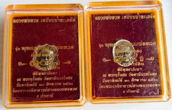 หลวงปู่ทวด หลวงพ่อรวย วัดตะโก รุ่นรวยนิรันตราย พิมพ์เตารีด เนื้อนวะโลหะ หล่อโบราณเทดินไทย ปี 2556 จ.อยุธยา พร้อมกล่อง |