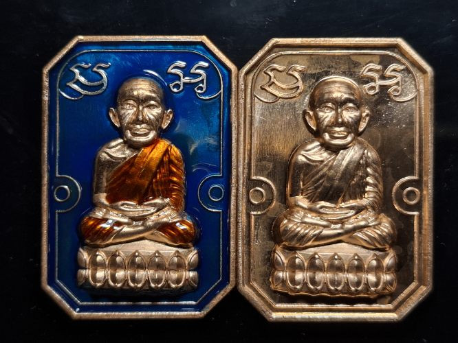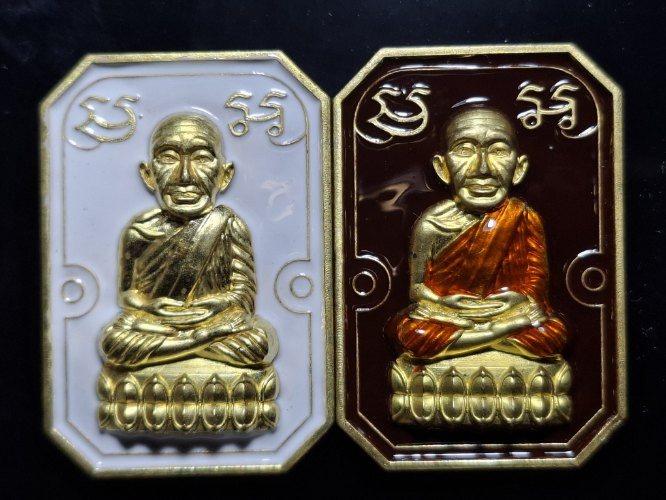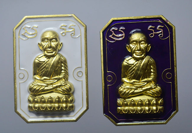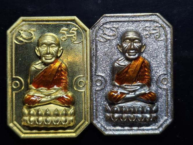 วัดใจ หลวงปู่ทวด หลวงปู่ศิลา เมตตาอธิษฐานจิต รุ่นเลื่อนสมณศักดิ์ เหนือดวง เนื้อทองทิพย์ ลงยา No.59 |