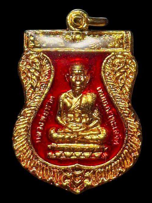 เม็ดแตงหลวงปู่ทวดหลังอาจารย์ทิม รุ่น101ปี เนื้อทองแดงนอกชุบทองลงยาแดง |
