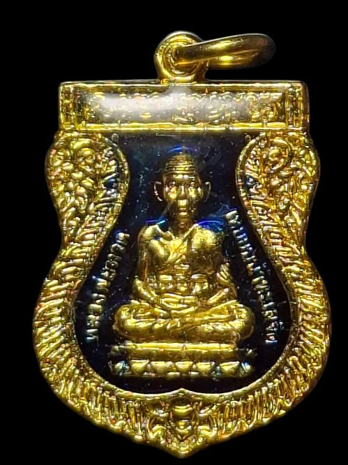 เม็ดแตงหลวงปู่ทวด หลังอาจารย์ทิม รุ่น101ปี เนื้อทองแดงนอกชุบทองลงยาดำ |