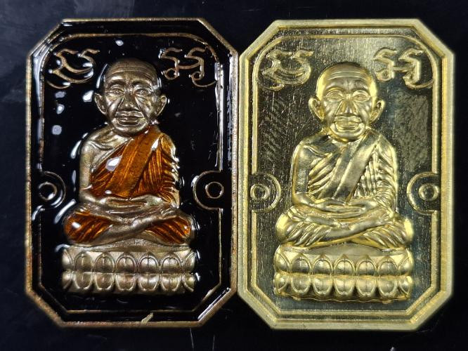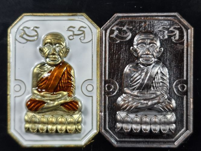 วัดใจ หลวงปู่ทวด หลวงปู่ศิลา เมตตาอธิษฐานจิต รุ่นเลื่อนสมณศักดิ์ เหนือดวง เนื้อทองทิพย์ ลงยา No.15 |