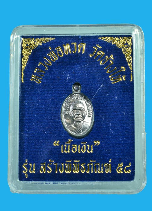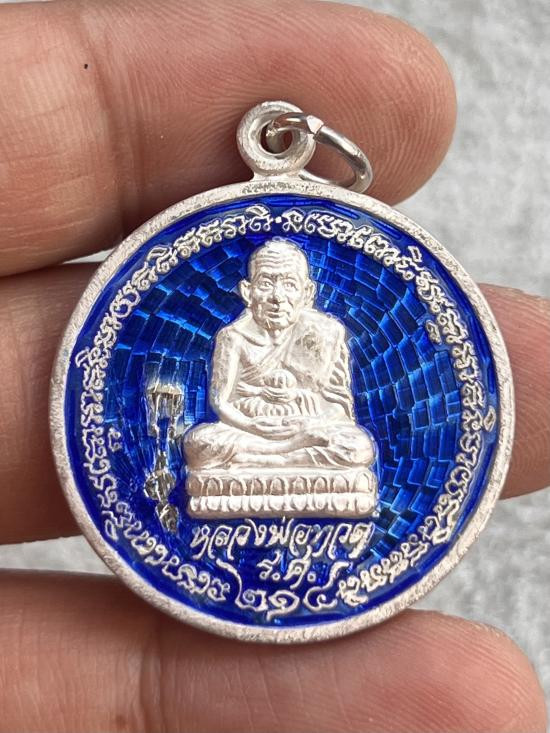 เหรียญหลวงปู่ทวด ร.ศ.214 โรงเรียนพิชัยรัตนาคาร เนื้อเงินลงยาน้ำเงิน มีกระเทาะตามรูป |