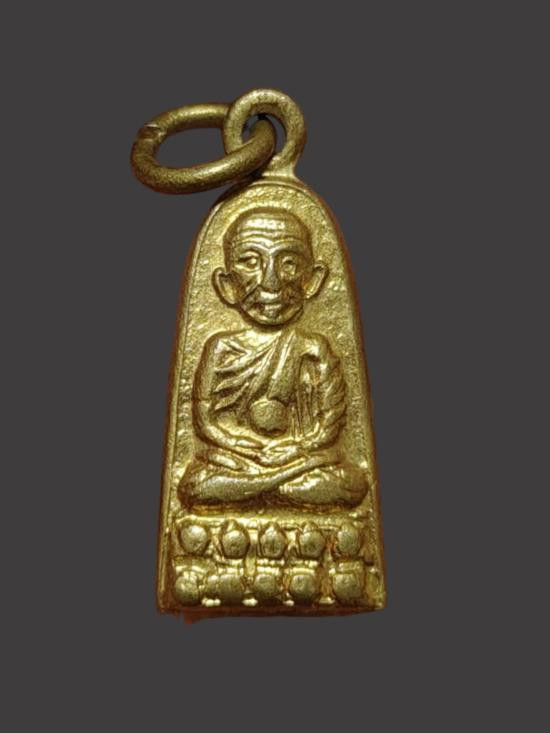 รูปหล่อลอยองค์ จิ๋ว (หล่นหาย) ลป.ทวด (เนื้อทองฝาบาตร) ลป.เนียน โชติธรรมโม สน.ต้นเลียบ อ.สทิงพระ จ.สงขลา สร้างปี 2538 (พร้อมกล่องบรรจุเดิมๆ) |