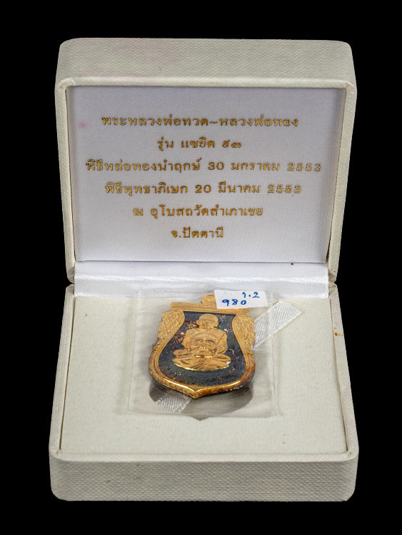 หลวงปู่ทวด พิมพ์เตารีดฉลุ รุ่น อภิมงคล ปี 2555 ปี มังกรทอง หลวงพ่อพรหม ธมมธีโร วัดพลานุภาพ จ.ปัตตานี เนื้อทองระฆัง เลข 203 |